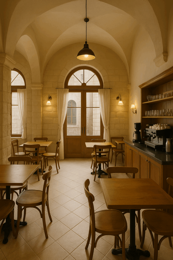 Located in a traditional Lebanese townscape, this café blends old-world charm with a welcoming dining experience. Housed in a restored heritage stone building, the design preserves the authentic façade while introducing a cozy, warm-toned interior.