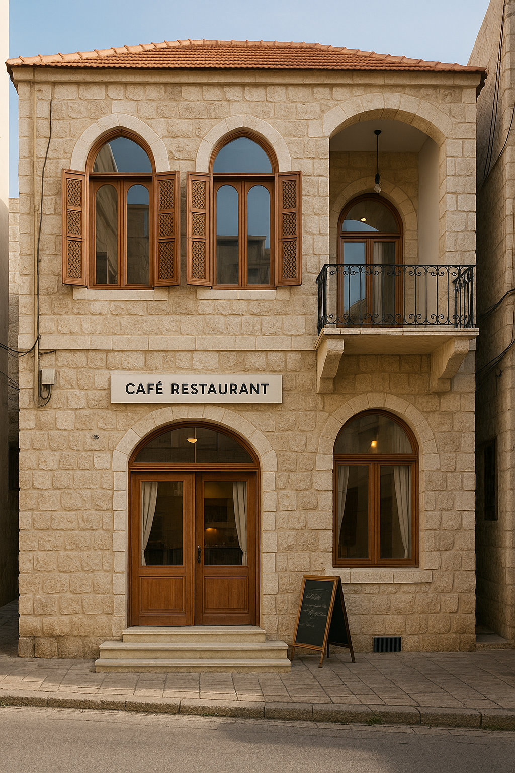 Located in a traditional Lebanese townscape, this café blends old-world charm with a welcoming dining experience. Housed in a restored heritage stone building, the design preserves the authentic façade while introducing a cozy, warm-toned interior.